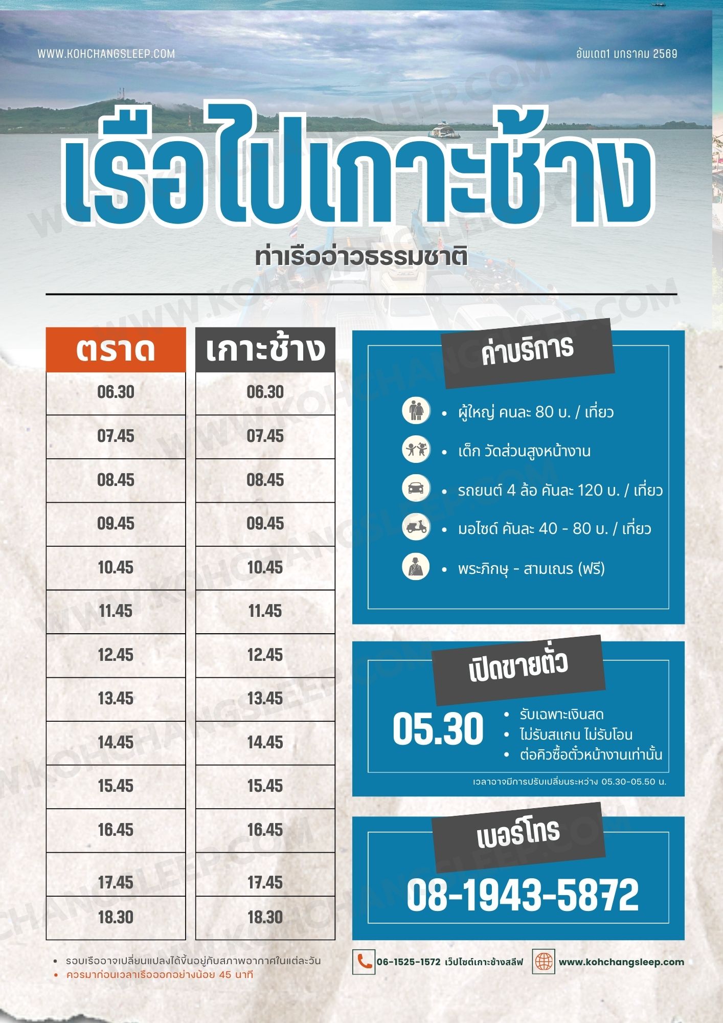 ข้อมูลท่าเรือไปเกาะช้าง (Update 2569)